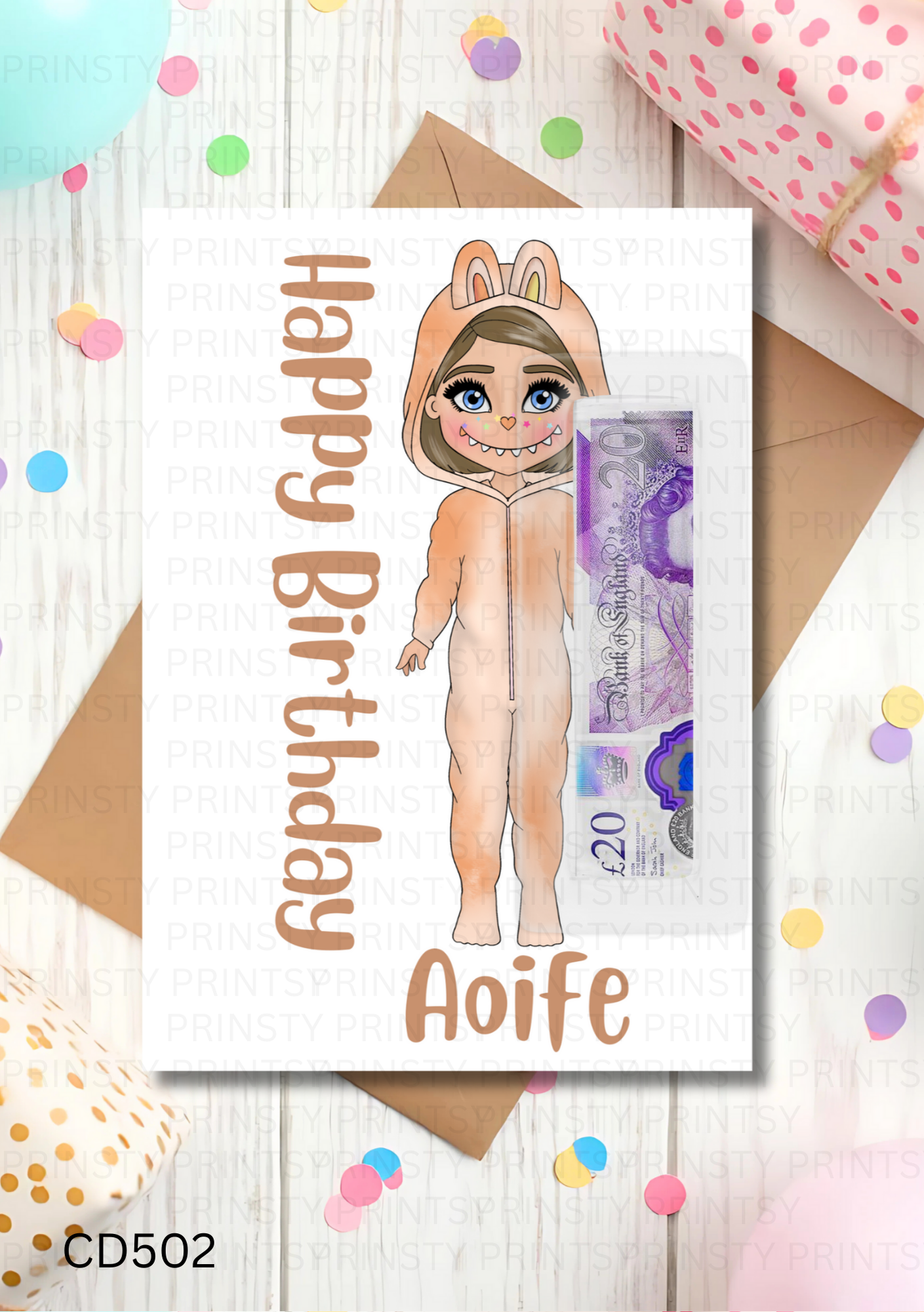 Our money cards are printed on high-quality 300gsm smooth card or glossy photo paper. each measuring approximately 4.1 x 5.8 inches. Fully personalised to meet your needs. These come with a money wallet suitable for notes, with a self adhesive backing to attach.