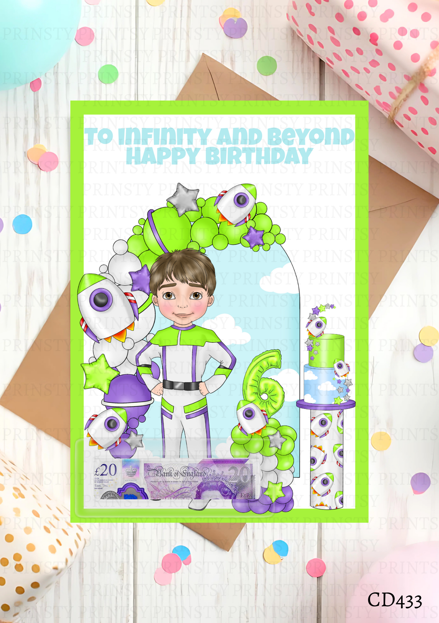 Our money cards are printed on high-quality 300gsm smooth card or glossy photo paper. each measuring approximately 4.1 x 5.8 inches. Fully personalized to meet your needs. These come with a money wallet suitable for notes, with a self adhesive backing to attach.
